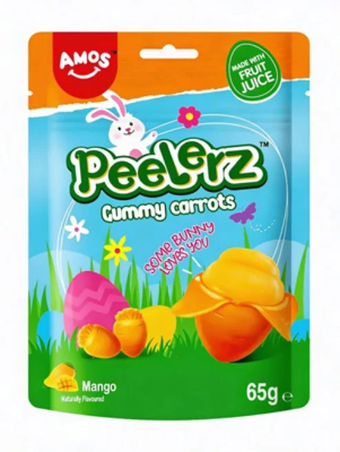 Amos Peelerz Carrots Húsvéti Hámozható Gyümölcs Ízű Gumicukor Valódi Gyümölcstartalommal 65g