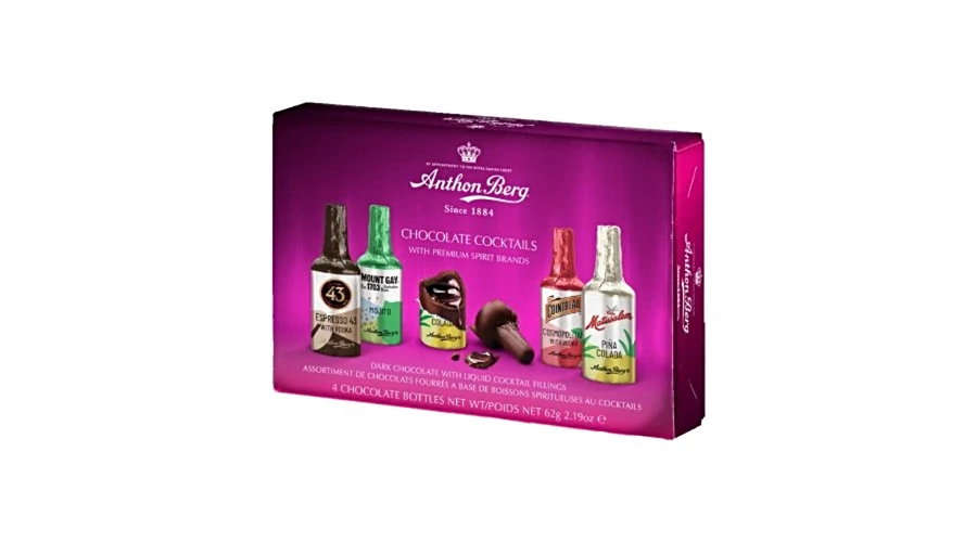 Anthon Berg Koktéllal Töltött Étcsokoládé Üvegek 62g (4db-os)