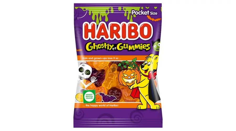 Glükózszirup, Cukor, Zselatin, Étkezési sav: citromsav, Aromák, Gyümölcs- és növényi sűrítmények: édesburgonya, retek, spirulina, sáfrányos szeklice, narancs, citrom, mangó, passiógyümölcs, fekete ribizli, bodzabogyó, arónia, szőlő, Bodzabogyó-kivonat, Invertcukorszirup, Karamellszirup, Fényezőanyagok: fehér és sárga méhviasz, karnaubaviasz
