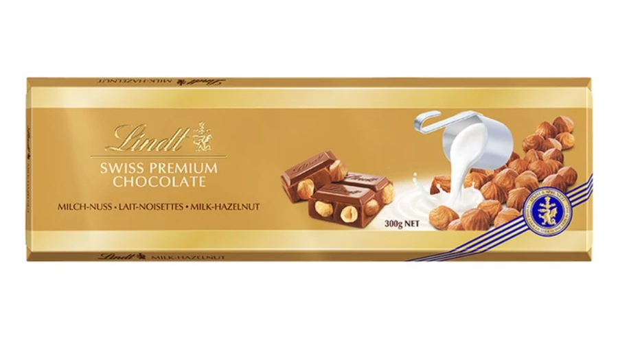 Lindt Swiss Prémium Tejcsokoládé Pörkölt Egész Mogyoróval 300g