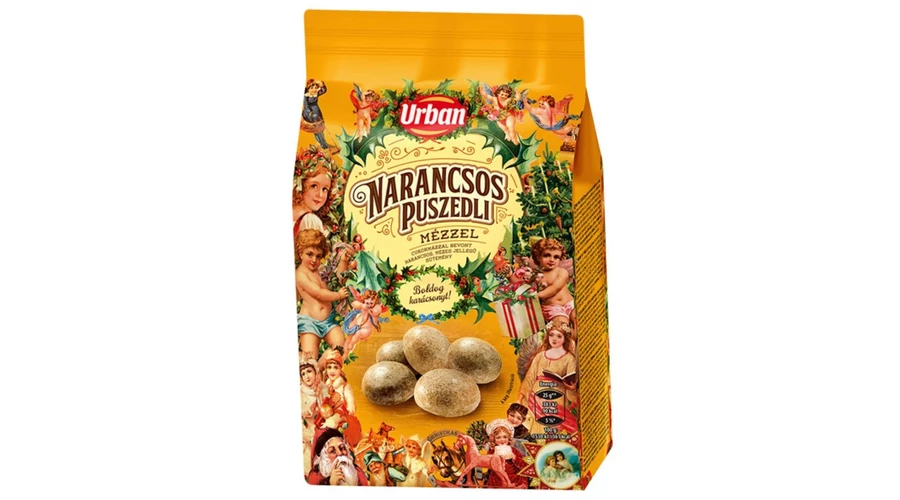 Összetevők: cukor,búzaliszt,narancslekvár (13,0%) [víz, cukor, glükóz-fruktózszörp, édesítőszer (szorbit, módosított keményítő), részben hidrogénezett növényi zsír (pálma), narancssűrítmény (2%), savanyúságot szabályozó anyagok (citromsav, nátrium-citrátok), stabilizátorok (gellángumi, kálcium-citrátok, taramagliszt), vaj, emulgeálószer (zsírsavak mono- és digliceridjei), aroma, tartósítószer (kálium-szorbát), színezék (karotinok)],Méz (7,0%),Rozsliszt,Fruktóz-glükózszörp,Tojássárgája lé [tojássárgája, tartósítószer (kálium-szorbát), savanyúságot szabályozó anyag (citromsav)],Burgonyakeményítő,Térfogatnövelő szer (ammónium-hidrogén-karbonát),Nedvesítőszerek (szorbit, glicerin),Tartósítószer (kálium-szorbát),Narancs aroma (0,05%),Stabilizátor (kálium-karbonát),Zselatin